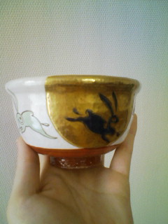 色とりどりのウサギがかわいい!湯のみとおそろいです。